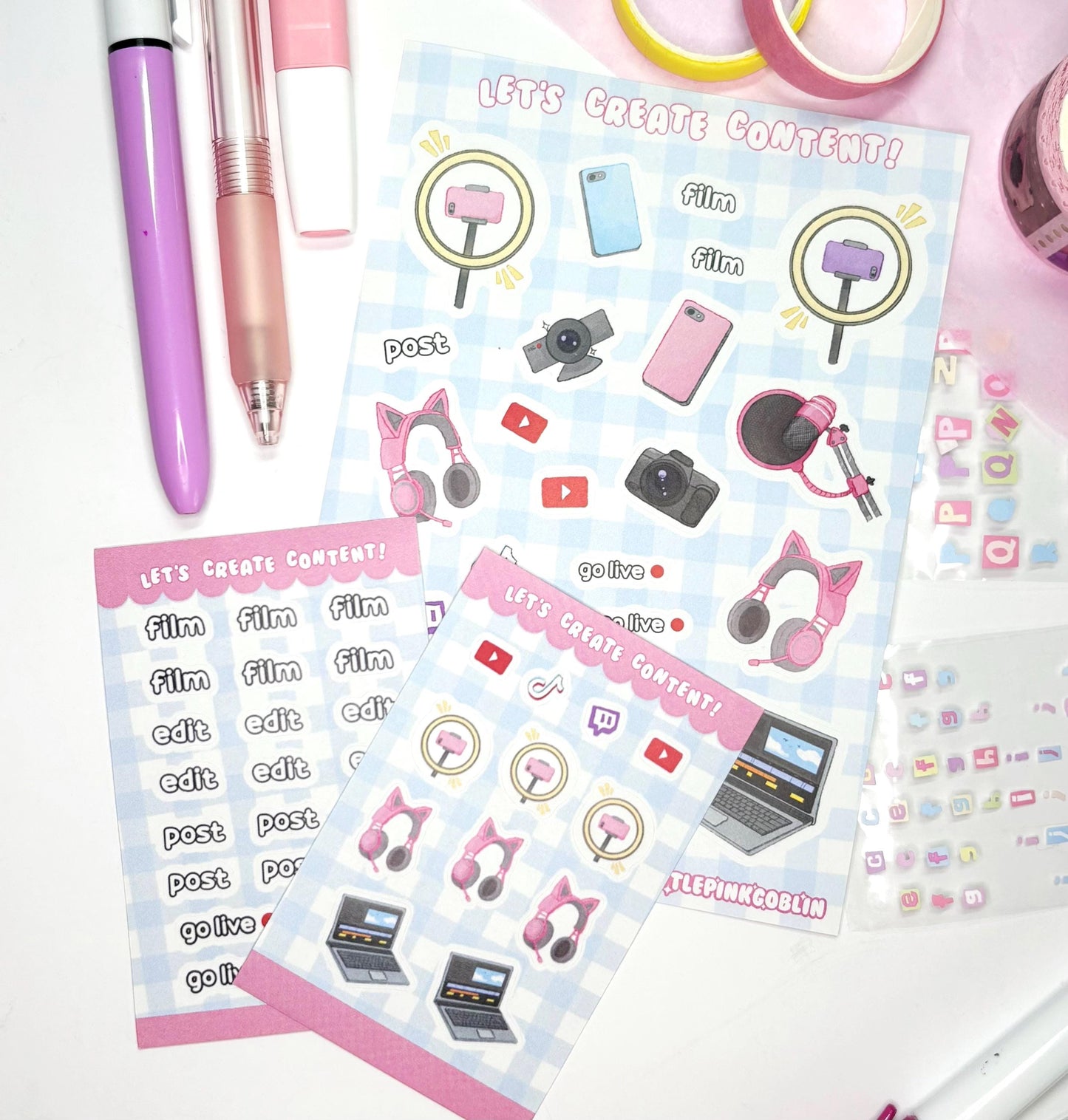 An A6 premium paper sticker sheet for planning and journaling. Keep track of your content creation schedule with these cute stickers! Or select the 9x6cm mini version for a perfect addition to the collection binder.