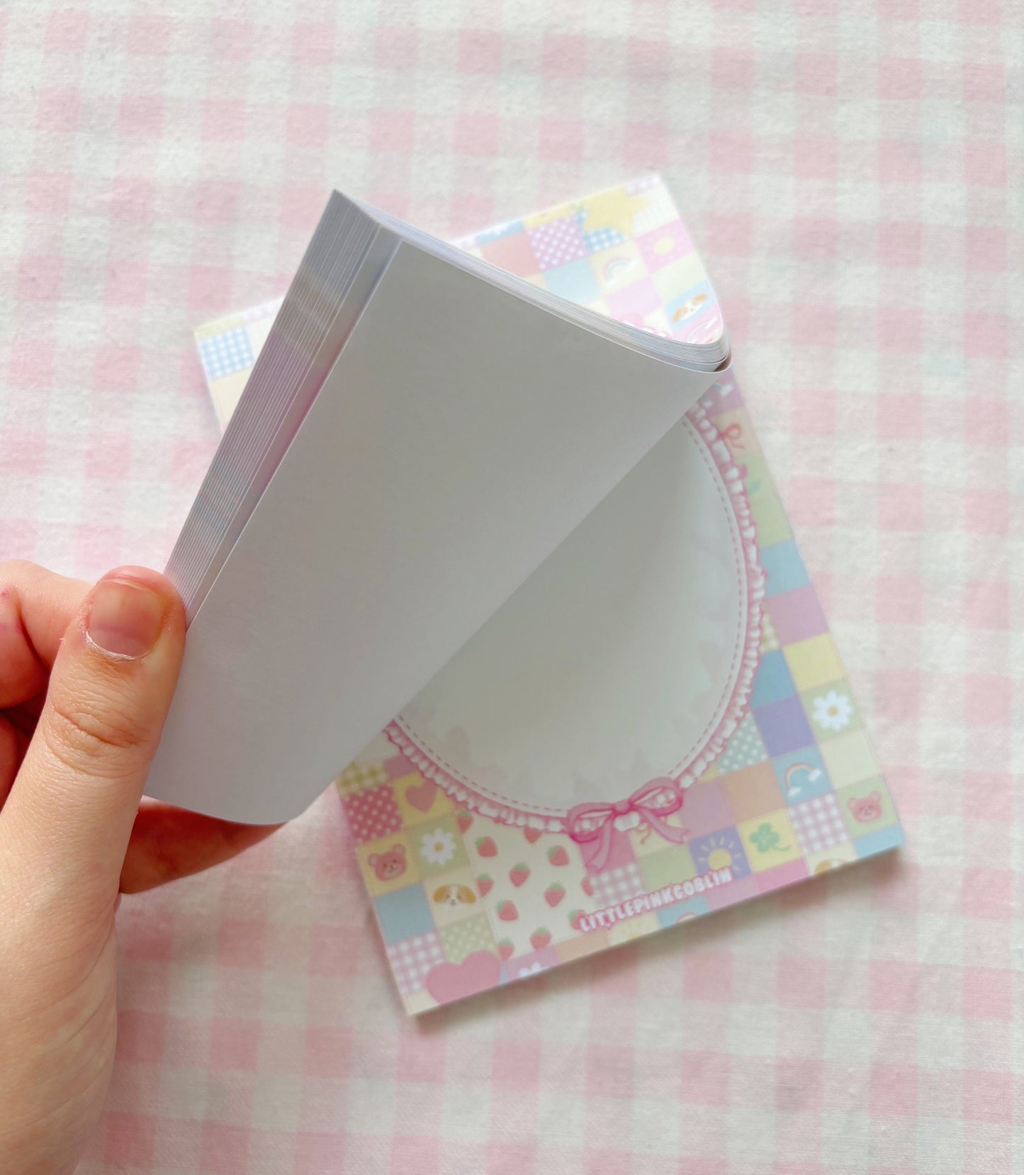 A cute pastel decorative memo pad inspired by patchwork quilt pattern. Perfect for leaving a sweet note to your kawaii pals. Approximately 50 pages to use.