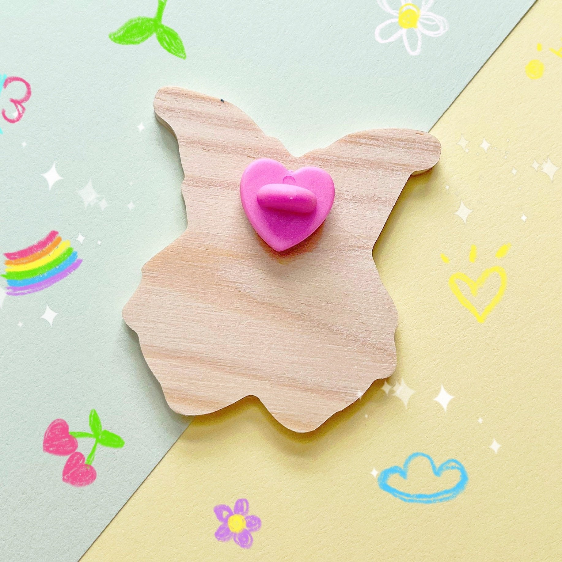 A sweet 2 inch lightweight wooden pin featuring a pair of gnomes smooching!