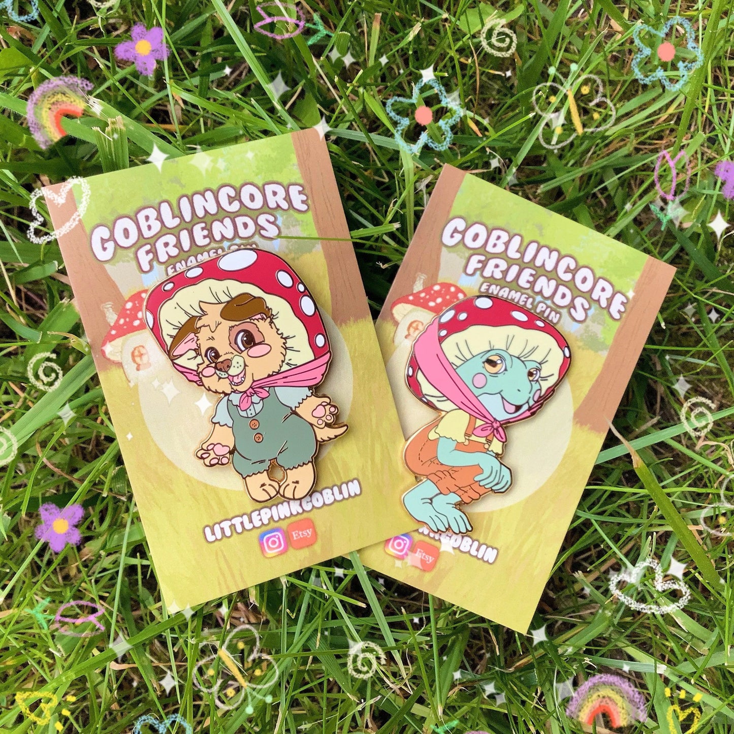 🍄✨🌈🧚🏻♂️🍃🐸 These adorable little Goblincore friends, Oakley and Banjo are very excited to be enamel pins!