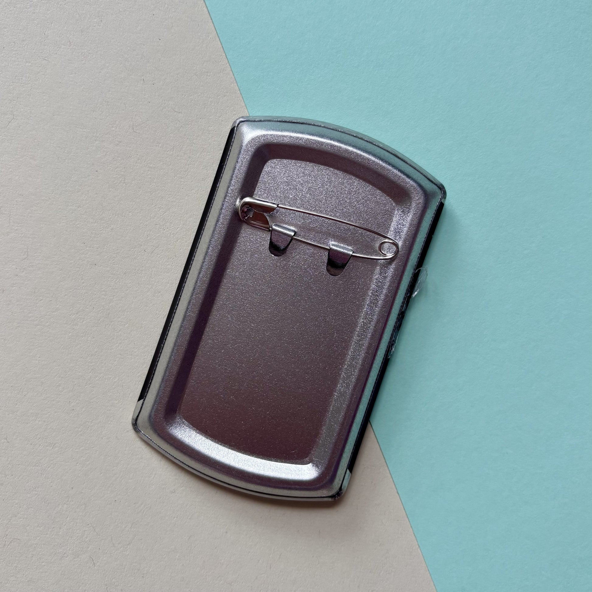 A 7.5cm can-shaped tinplate badge featuring the Monster Christian mom meme!