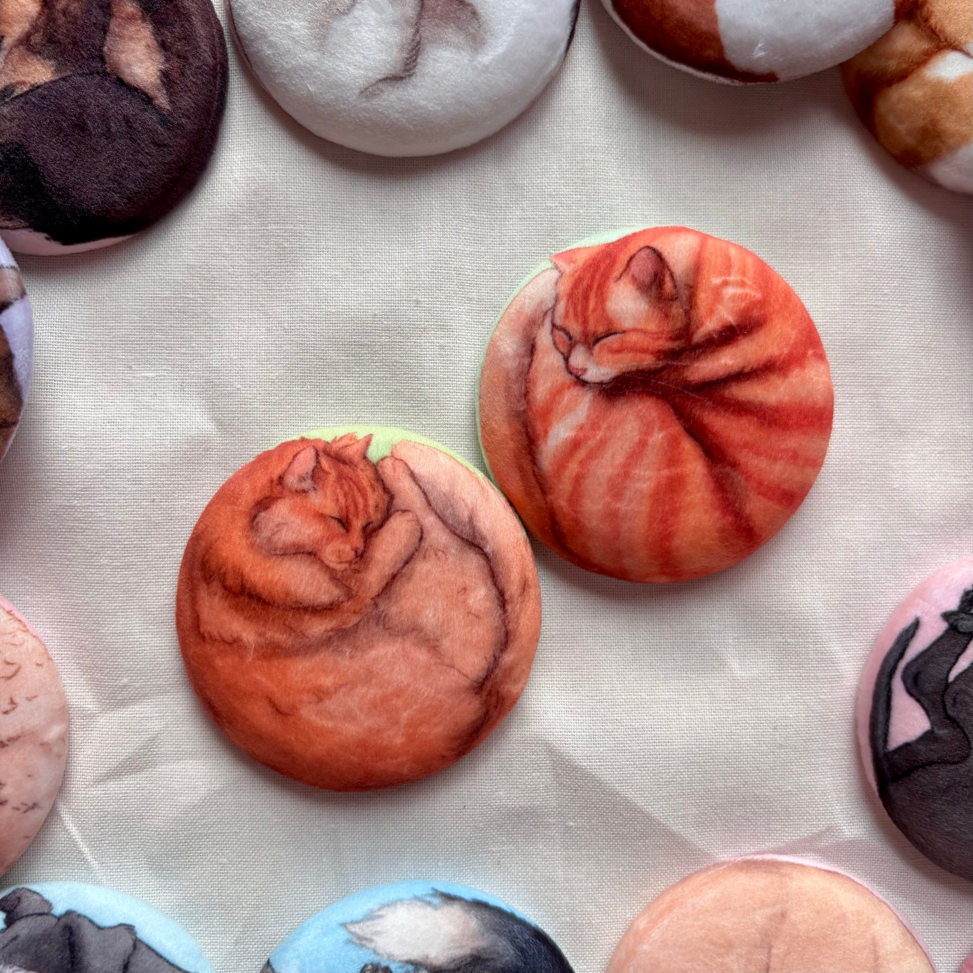 Share your love and for your favourite kind of cats with this sweet and sleepy plush pin.