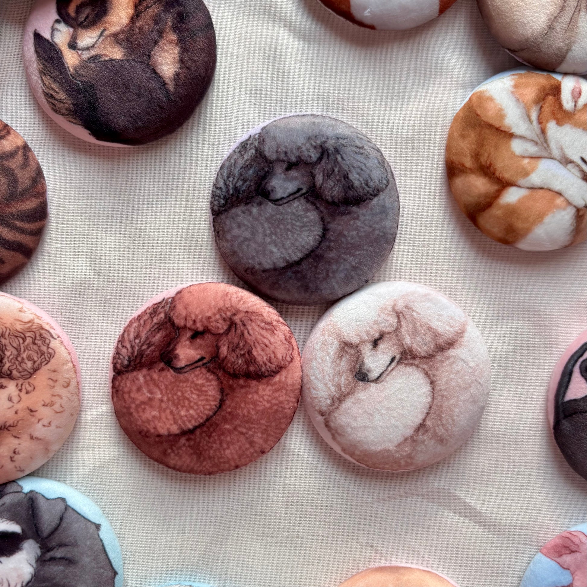 Share your love and for your favourite kind of dogs with this sweet and sleepy plush pin.
