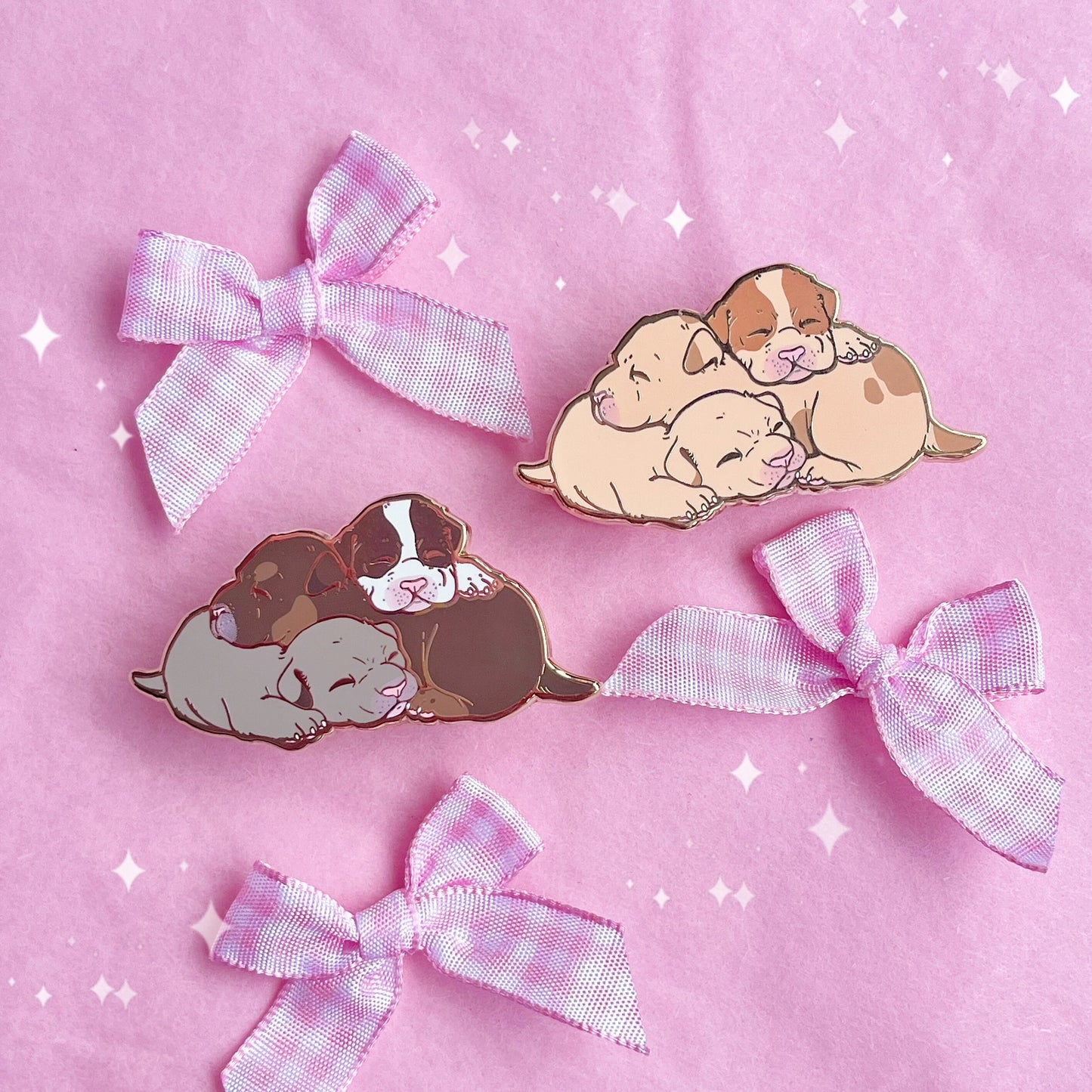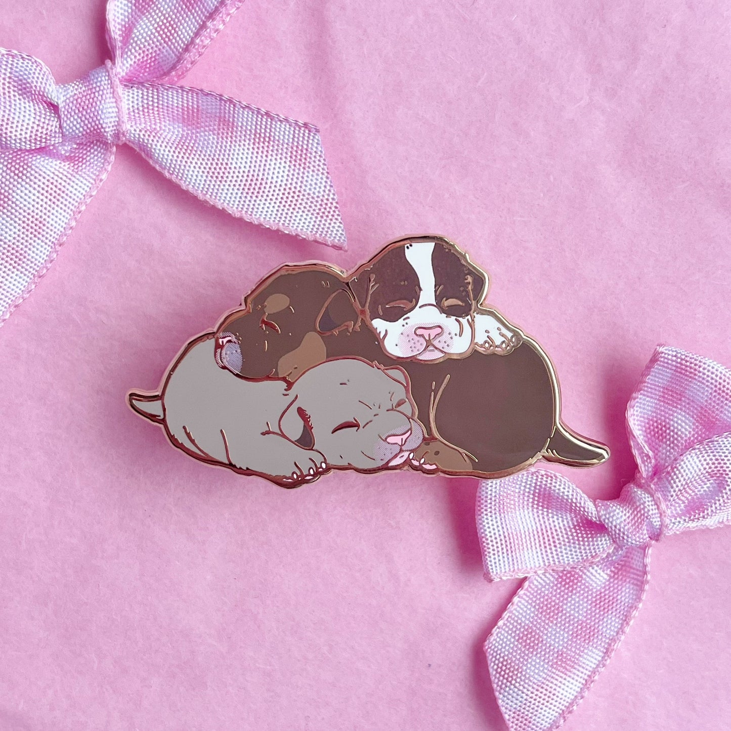 The sweetest pile of newborn puppies snuggling close for warmth. I simply wanted to make an enamel pin of my favourite thing in the world.